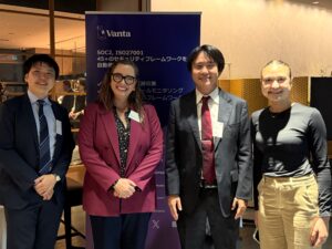 このたび、2025年10月8日に日本橋で開催された Vantaキックオフイベントに、弊社が招待されました。当日は、Vanta社のCRO(Chief Revenue Officer)であるStevie Case氏と、 SOC2をはじめとする情報セキュリティ・コンプライアンスの現状と今後の展望について意見交換を行いました。